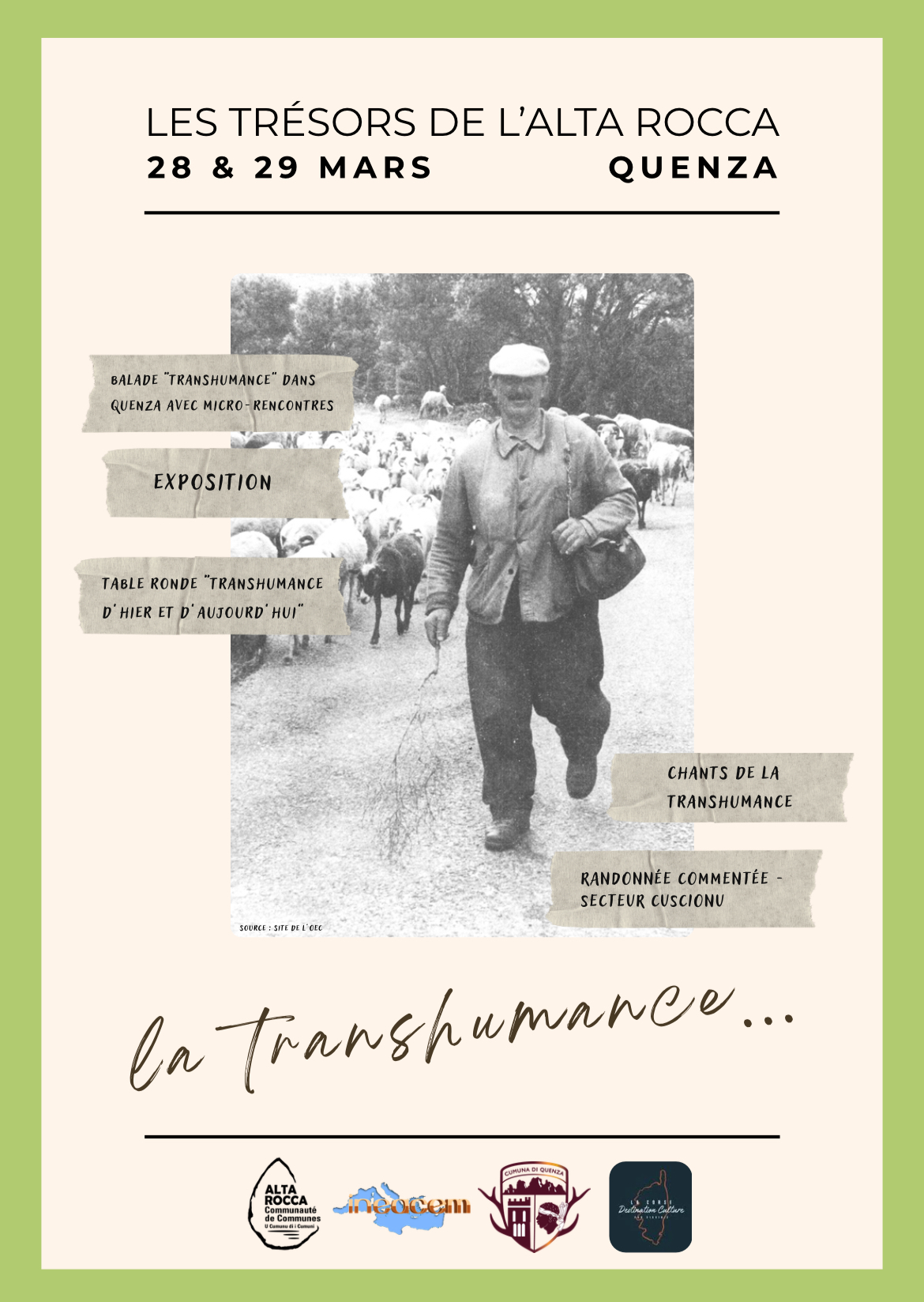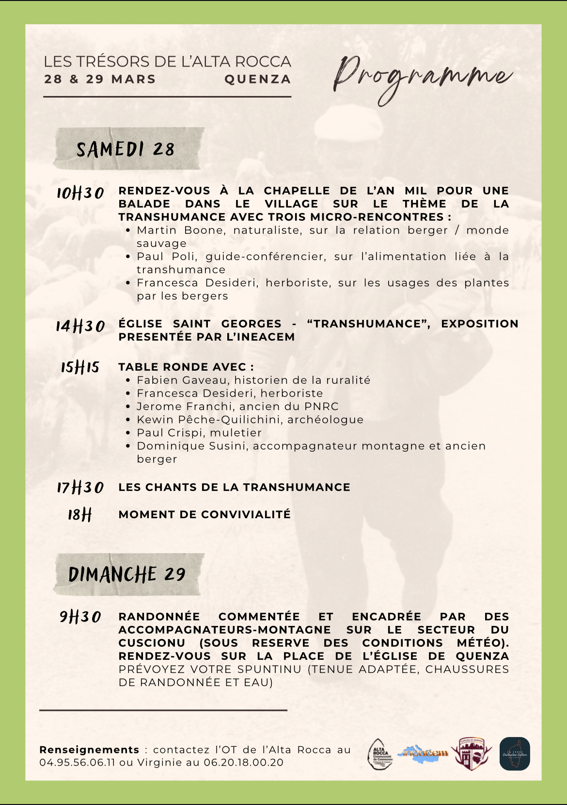 Avec le soutien de : la Communauté de Communes de l'Alta Rocca, la Commune de Quenza, la CACEM, La Corse Destination Culture par Virginie.